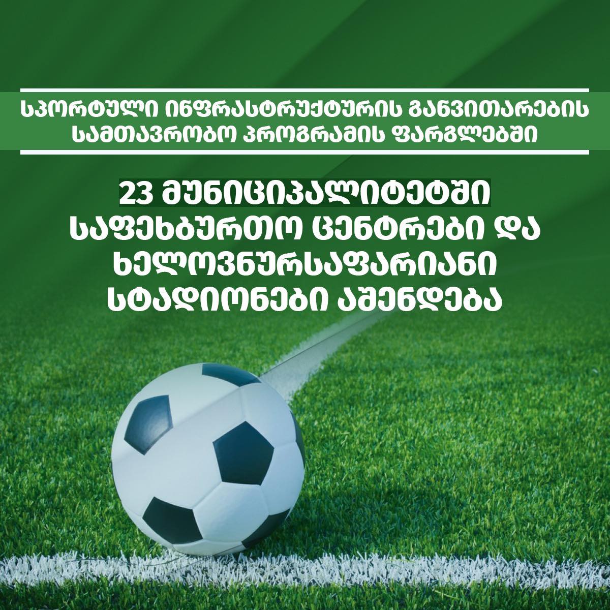 პროექტი საქართველოს მთავრობის მიერ ინიცირებული სპორტული ინფრასტრუქტურის განვითარების სპეციალური პროგრამის ფარგლებში ხორციელდება, რომლის ფარგლებშიც 23 მუნიციპალიტეტში საფეხბურთო ტექნიკური ცენტრები და ხელოვნურსაფარიანი სტადიონები აშენდება.
